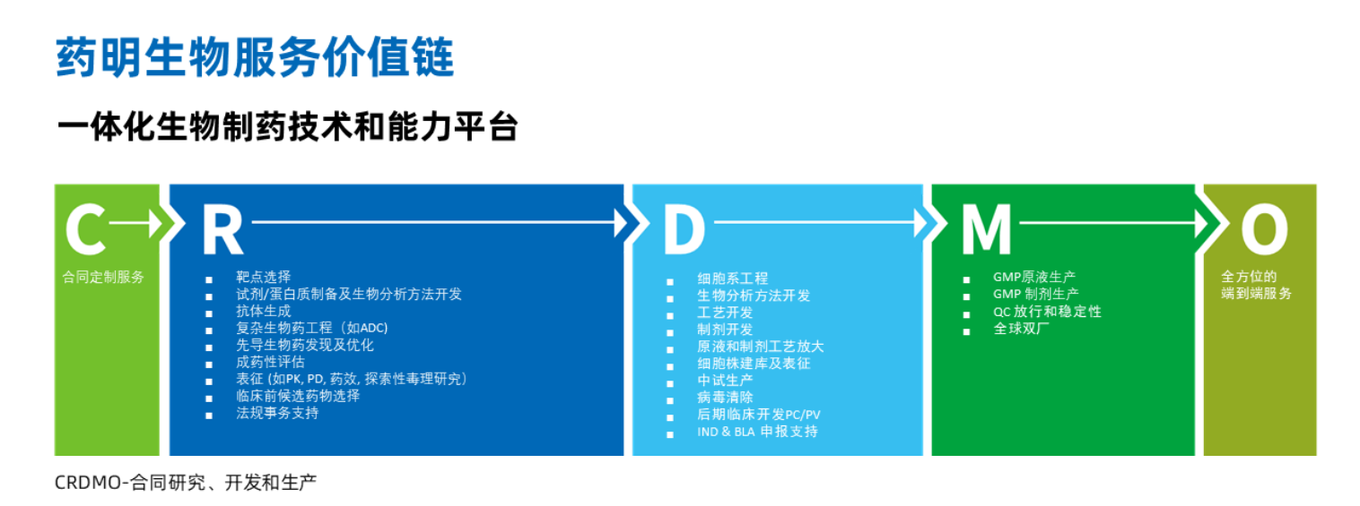 作为行业领先的合同研究、开发和制造机构(CRDMO),药明生物为各种生物药和疫苗提供一站式服务,这些药物和疫苗由哺乳动物细胞培养和微生物发酵系统生产。我们已经帮助全球400多家客户将数百种生物药和疫苗推向临床试验阶段及上市。