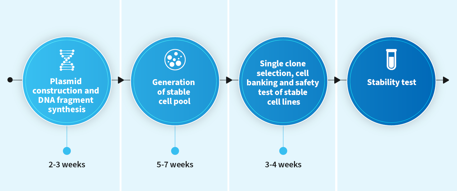 药明生物生物新药研发服务部提供哺乳动物工具细胞系的构建服务,包括抗原过表达和基因敲除细胞池和单克隆细胞系等。我们拥有高水平的细胞系构建团队,丰富的细胞系生产经验,包括G蛋白偶联受体蛋白(GPCRS)表达,离子通道表达,多抗原共表达细胞系,和多种信号通路报告基因工具细胞系等等。