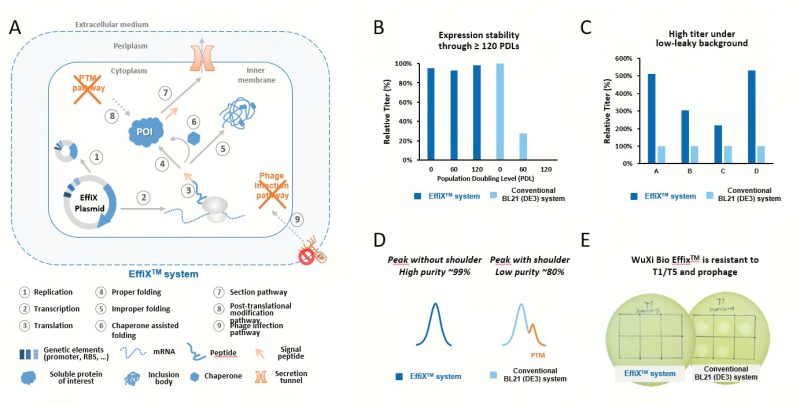 EffiXTM表达系统通过优化质粒复制、靶基因转录、翻译及安全性实现技术升级。这为新型生物药,特别是那些难表达的复杂分子的稳定性和规模化生产奠定了坚实的基础。