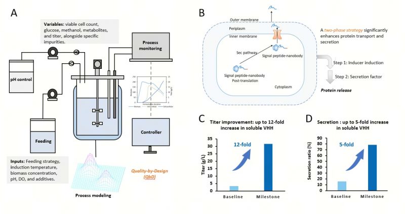 (B)提升VHH产量的两阶段策略。